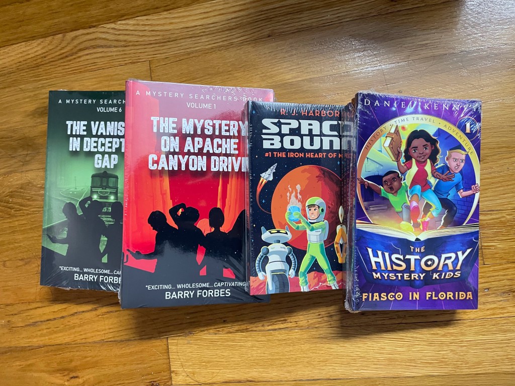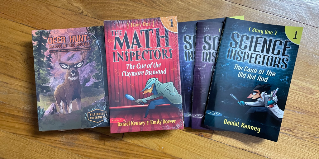 Space Bound books 1-5, 1-6 Wilderness Adventures Books, 1-3 Science Inspectors Books, Math Inspectors 5-book bundle. (19 total; Smithtown Library – Commack)
